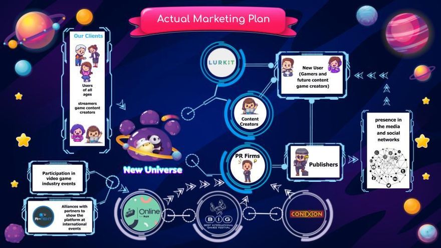 We hope to continue attending other events in order to find potential partners or a PR firm that will help us make the platform visible and integrate other monetization methods to make New Universe known throughout the world.