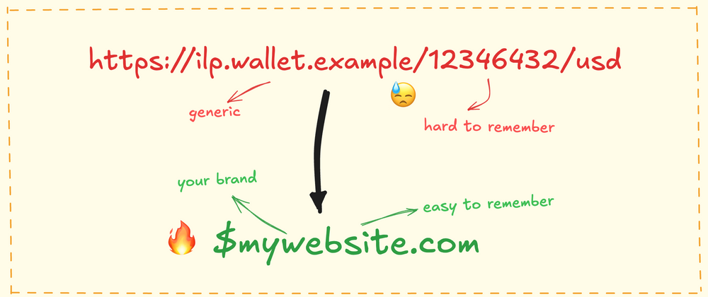 So, instead of https://ilp.wallet.example/12345432/usd, you can have $mywebsite.com as your wallet address (well, technically, a payment pointer)! Itβs as easy as pie to remember.