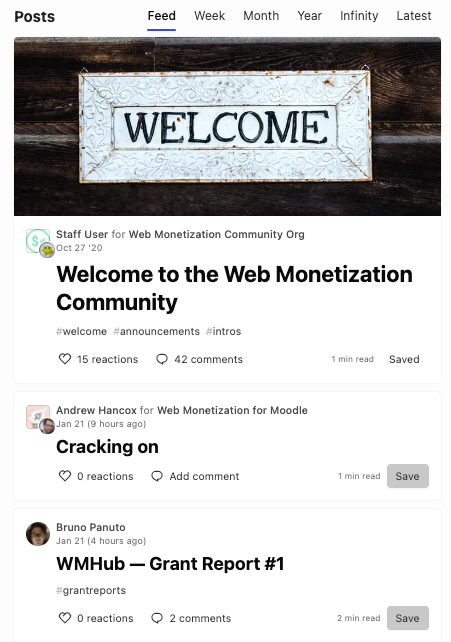 Our Web Monetization Community has been steadily on the rise, and with more folks joining up, we thought it might be helpful to discuss a bit about how the user feed works in more detail.