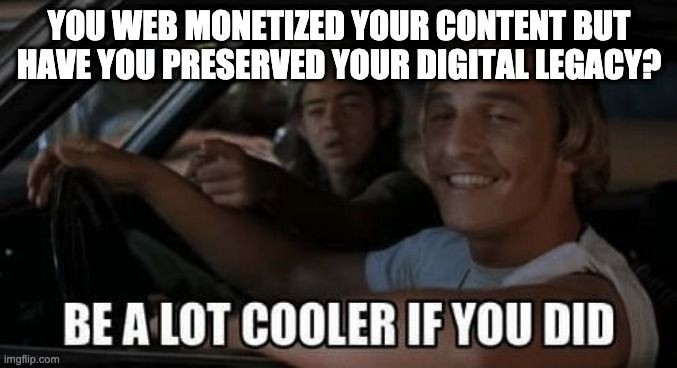 Fundamentally, we are calling for all people interested in the broad issues of digital preservation and how new pay for storage models can help us not only save what's already published, but create new channels for all people to control and preserve their digital legacies.