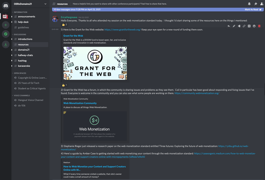 Informally shared on the web monetization standard in other talks at the conferences and in other creative and educational gatherings, including to the MET Zoom Cafe, which was featured in their newsletter.