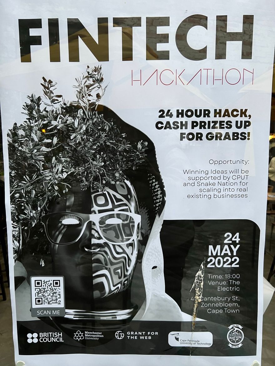 Snake Nation held a 24h FinTech Hackathon where Students from Cape Peninsula University of Technology received a briefing on how and why Interledger is important to solving ledger problems in FinTech and also a talk by Cape Town municipal officer on economic development. Students grouped themselves by company where they ideated and built mockups and pitched their companies and creations. The winners were awarded R10k and opportunity to be incubated in the BIIC (Business Innovation Incubation Center).