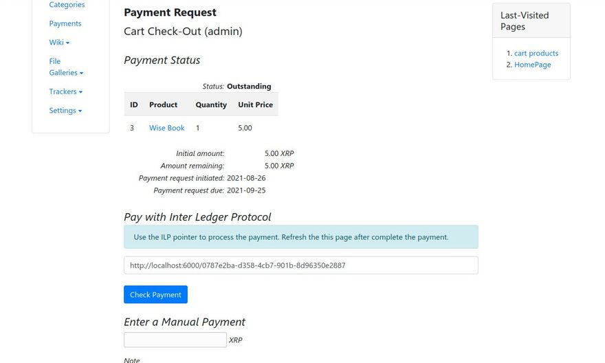 Add a product to your cart, click Check-out in the right panel to obtain the ILP pointer for the payment. Copy the link and paste it back at your ILP network command line to send the money. Reload the page or Check Payment.
